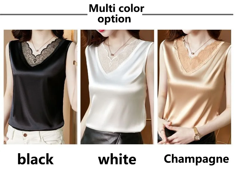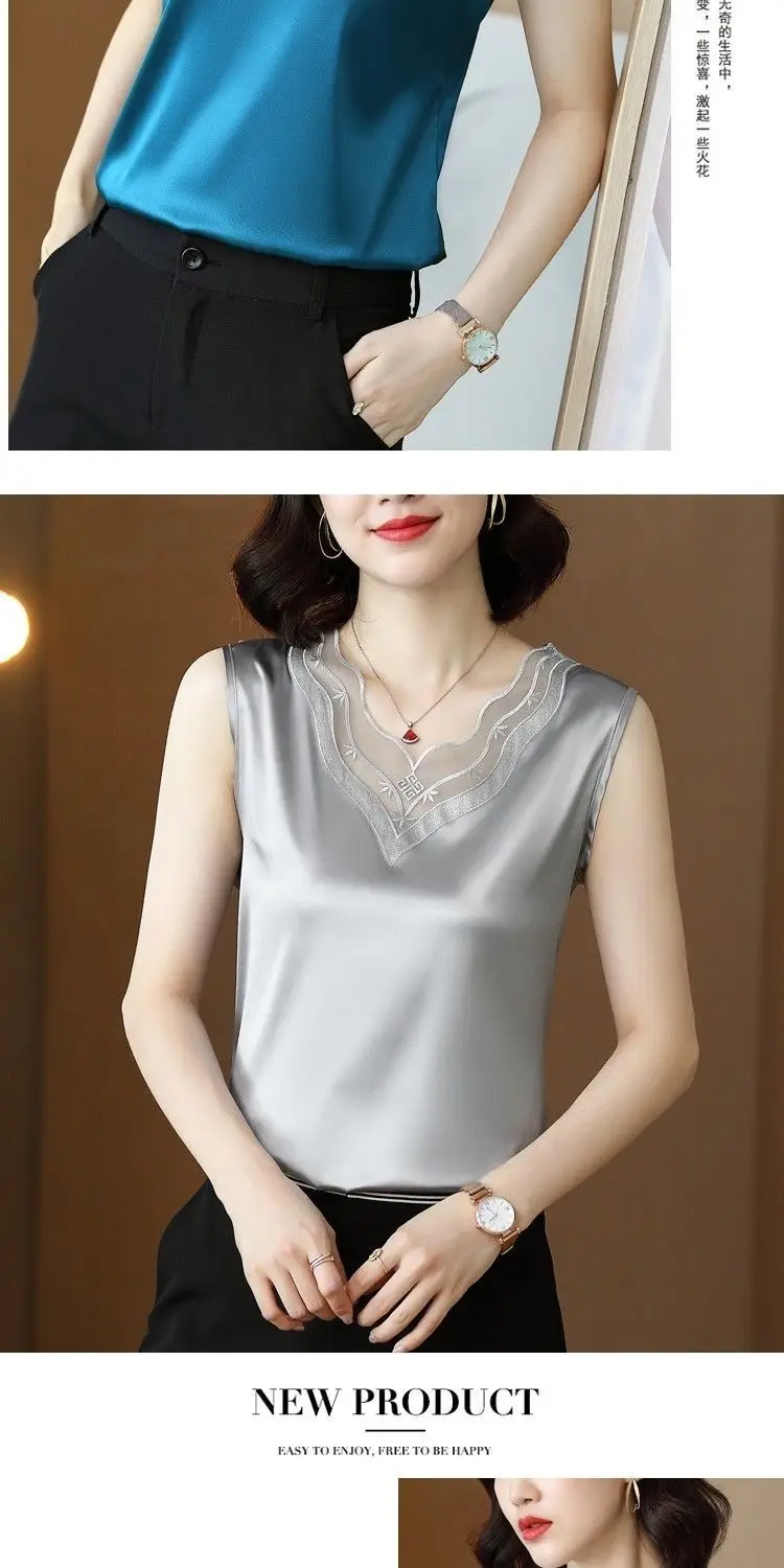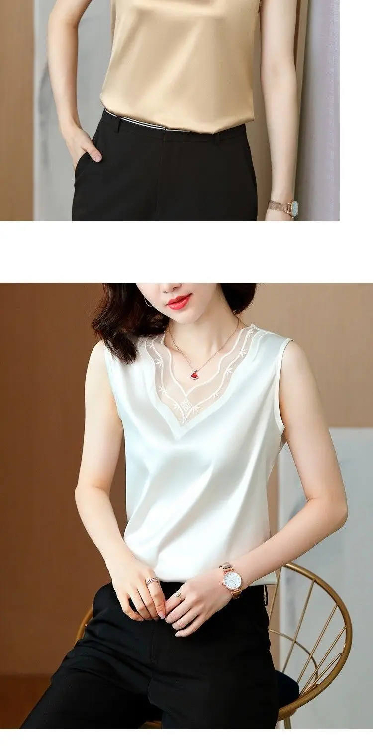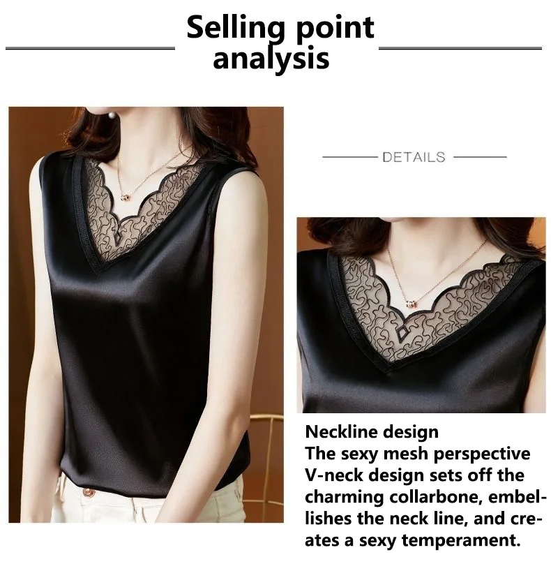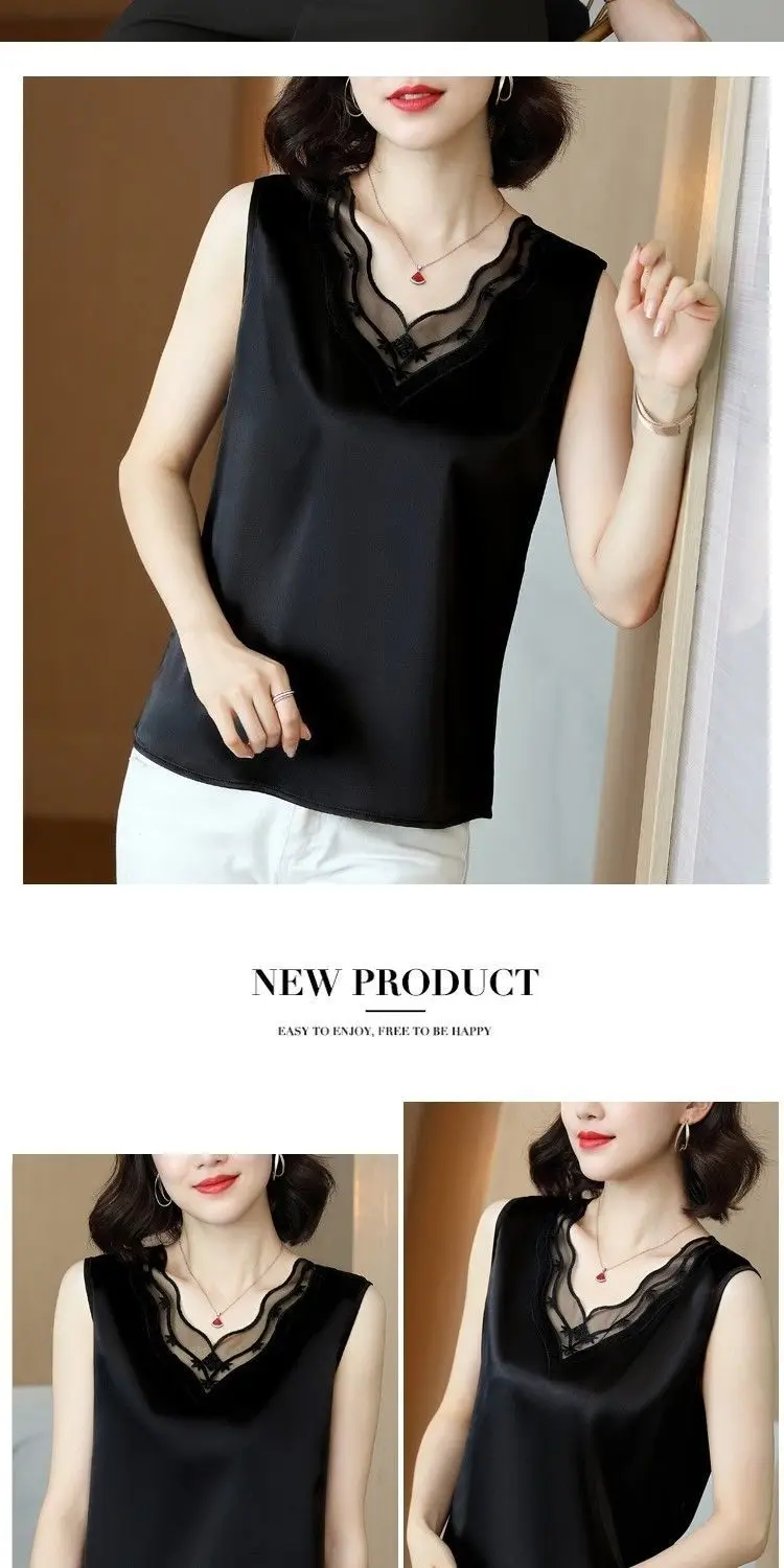 2022 Versatile Strap Vest Large Women's Dress in Spring and Autumn Wear a sleeveless bottomed lace V-neck top Package: 1 x Vest and 2 x hairbins