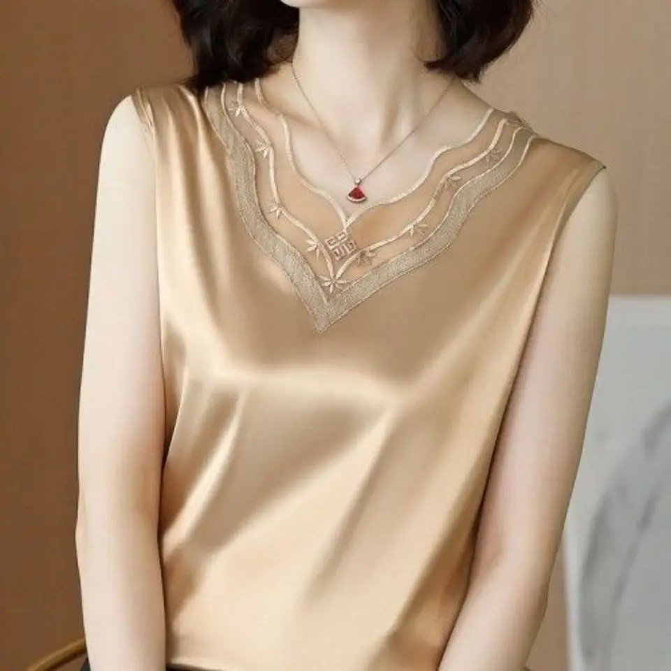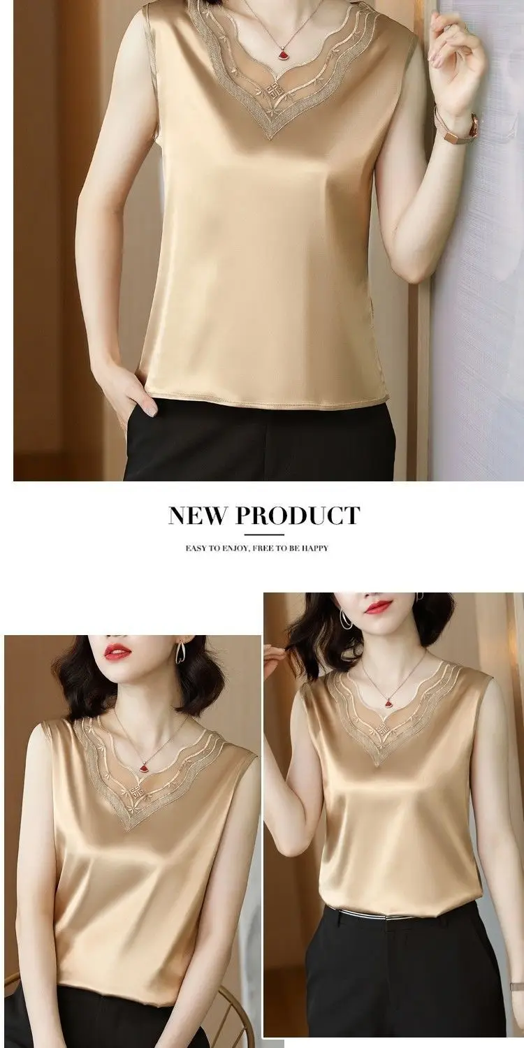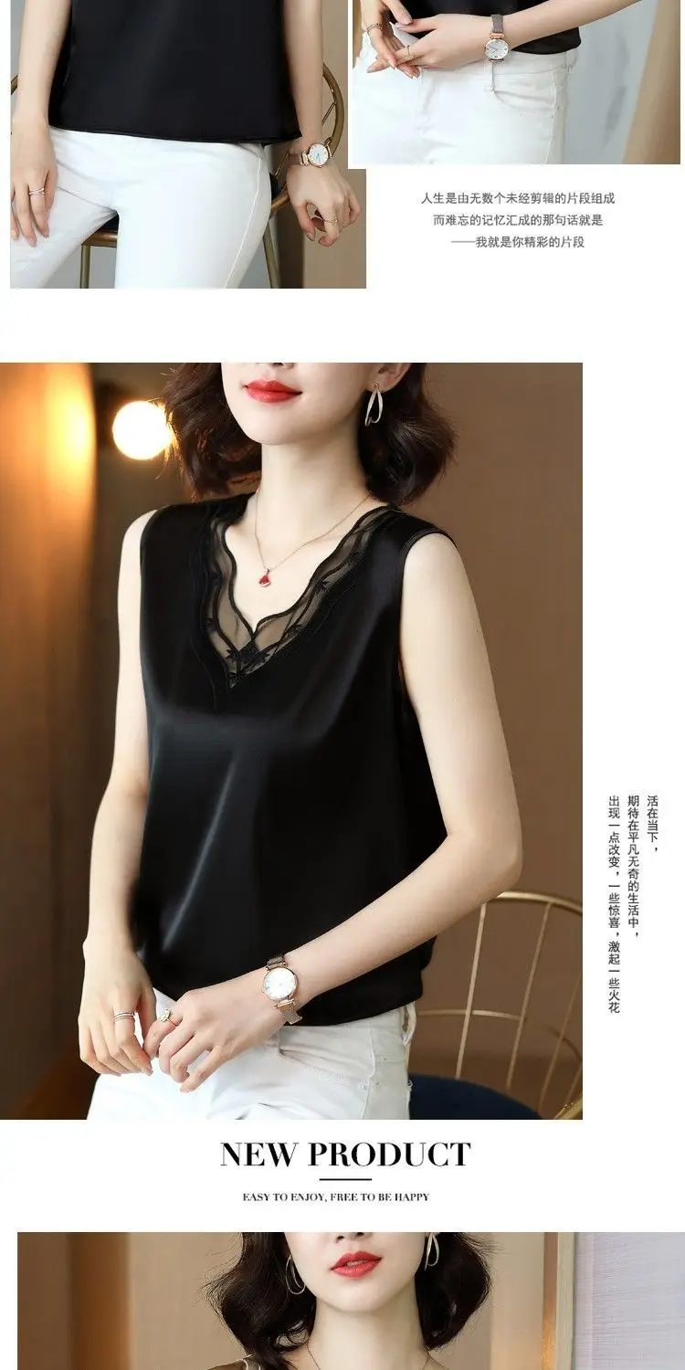 2022 Versatile Strap Vest Large Women's Dress in Spring and Autumn Wear a sleeveless bottomed lace V-neck top