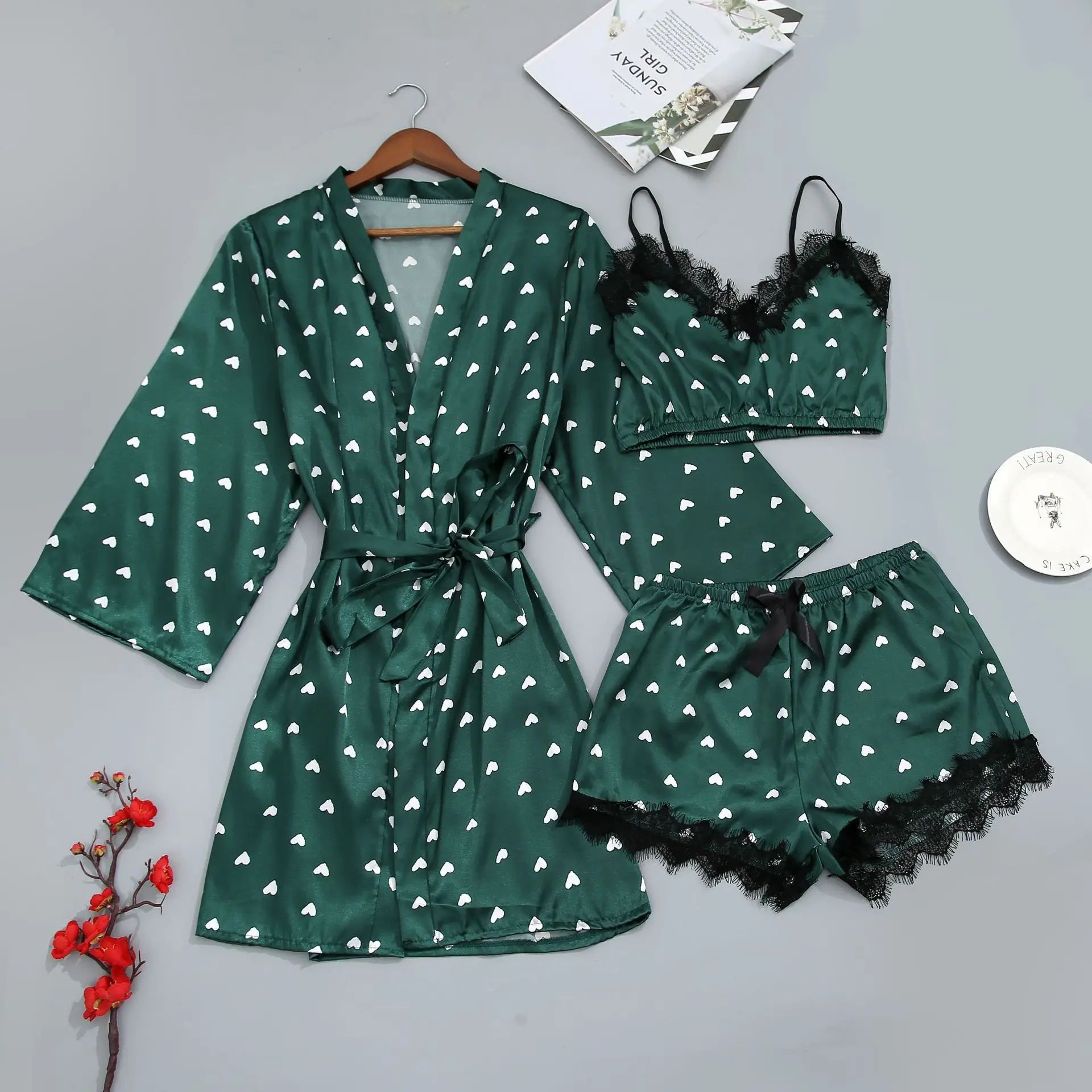 woman women sleeping pajamas New women’s 4-piece set of lace up sleepwear women’s summer set with nightgown skirt Lounge set